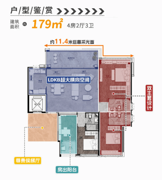 建面179㎡户型:总价748万起,同样采用双从卧套间设想,空间操纵率极高。动静分区合理,歇息区取勾当区互不干扰。南向大面宽采光充脚,室内敞亮通透。适合逃求舒服栖身体验的改善家庭,是入门级大平层的优选。