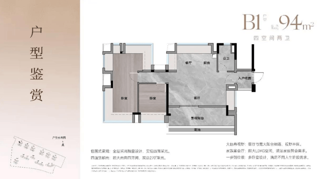 该户型采用了LDKB一体化方厅设想(客堂、餐厅、厨房、阳台一体化),让空间愈加通透宽阔。270°采光面,让室内亮堂通透,毫无压制感。矫捷空间可按需成书房或儿童房,适用性拉满。塔楼2梯4户的设置装备摆设,保障了出行效率,避免了迟早高峰的拥堵。对于二孩家庭来说,两个孩子能够具有各自的房间,互不打搅。对于三代同堂的家庭来说,白叟和孩子能够分隔栖身,既连结了亲密的关系,又卑沉了相互的糊口习惯。这个户型,实正做到了“小而美,精而全”,是改善型家庭的明智之选。